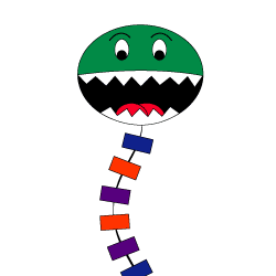 Designed by Christine Lin at age 7, the green monster kite is a perfect example of an idea becomming a reality. This kite features an extra long custom "monster feet" tail. |